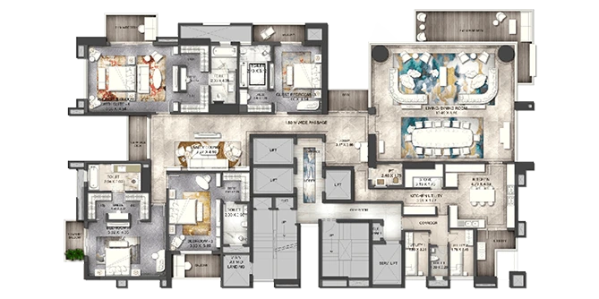 Built using the finest construction quality and the best materials, an ATS Knightsbridge sky villa makes your living luxurious in every minute aspect. With each residence sprawled across an entire floor, and a careful separation of the private and public spaces, each room, with its own savoir faire, is a statement in itself, thus making it one of the finest luxury projects, providing the most luxurious apartments in Noida.